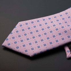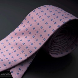 Cravate homme - pure soie - rose à motifs bleu