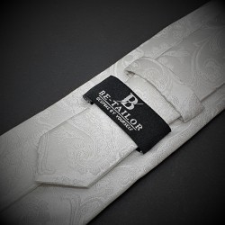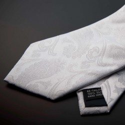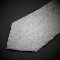 Cravate homme mariage - pure soie - blanc à motifs Paisley blanc