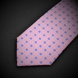 Cravate homme - pure soie - rose à motifs bleu